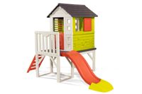 Z dwoma oknami z przesuwanymi żaluzjami, drzwiczkami, drabinką do wchodzenia, werandą i zjeżdzalnią o długości 150 cm.