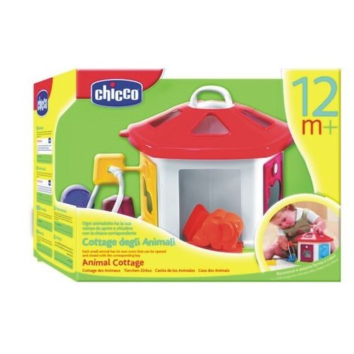 Chicco Domek Zwierząt to pierwszy sorter kształtów. Składa się z plastikowego domku, w którego ściankach znajdują się otwory o różnym kształcie.