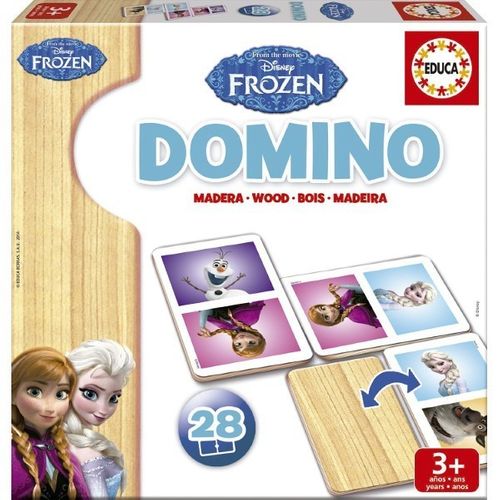 Tradycyjna gra w domino, ale z niesamowitymi zdjęciami postaci z Bajki Frozen w wydaniu drewnianym. Duży Format.