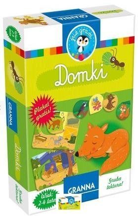 Gdzie śpi w nocy wiewiórka? Jak wygląda domek pszczół? Co budują mrówki prawdziwi leśni architekci? Gra Domki pozwala dzieciom poznać zwierzęta i dowiedzieć się, jak wyglądają ich domy. W trakcie zabawy najmłodsi gracze ćwiczą słownictwo i spostrzegawczość. Zawartość: - 8 plansz domków - 8 żetonów zwierzątek - instrukcja - plakat edukacyjny