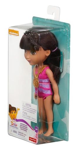 Ponad 20-centymetrowa lalka Dory ubrana jest w różowy strój gimnastyczny z fioletowymi motywami i kwiatkiem, na nadgarstku ma błękitną bransoletkę, a na szyi złoty medal za osiągnięcia w gimnastyce!