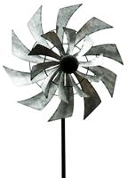 Spinner ogrodowy ze srebrnym metalowym wiatrakiem. W zestawie dwie błystki o prostym designie. Ta urocza dekoracja ogrodowa przyciąga wzrok i jest oryginalna. Wystarczy dotknąć ziemi, gdziekolwiek potrzebujesz. Wymiary (szer. X gł. X wys.): 40 cm x 7,5 cm x 150 cm. Duża błystka ma średnicę 40 cm, mała 27 cm.