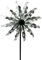 Spinner ogrodowy ze srebrnym metalowym wiatrakiem. W zestawie dwie błystki o prostym designie. Ta urocza dekoracja ogrodowa przyciąga wzrok i jest oryginalna. Wystarczy dotknąć ziemi, gdziekolwiek potrzebujesz. Wymiary (szer. X gł. X wys.): 31 cm x 2,5 cm x 146 cm.