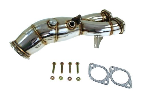 Downpipe firmy TurboWorks, wykonany ze stali nierdzewnej.