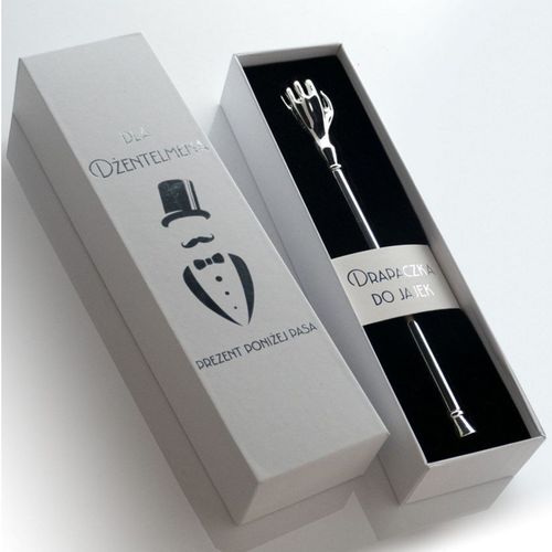 Drapaczka gentelmana to bardzo przydatny gadżet – służy do drapania tych części ciała, których publicznie dotykać nie wypada… a jak wiadomo, swędzą czasem tak samo jak głowa czy ręka. Drapaczka gentelmana umożliwi rozwiązanie problemu szybko i dyskretnie, bez narażenia się na towarzyskie faux pas. Gadżet ma kształt kobiecej dłoni i opakowany jest w eleganckie etui.