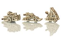 Puzzle 3D wykonane z ekologicznej sklejki. Zestaw trzech mini statków do własnoręcznego składania. Zabawka nie wymaga użycia kleju.