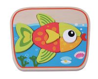 Zestaw drewnianych puzzli, wspomagających rozwój koordynacji ruchowo-wzrokowej dziecka. W całości wykonane z drewna, dekorowane farbą bezpieczną dla dziecka.