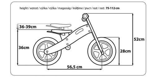 Pojazd jest rekomendowany dla dzieci o wadze maksymalnej nie przekraczającej 28 kg i wzroście w przedziale 75 – 112 cm.