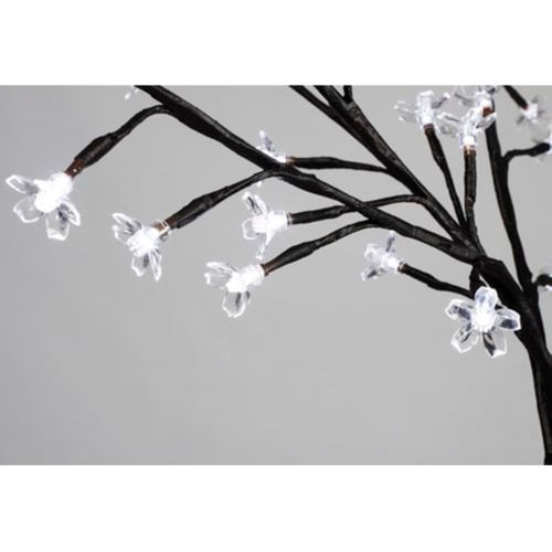 Piękne drzewko które będzie niezwykłą ozdobą podczas świąt. Jego gałązki rozświetla 128 białych światełek LED oraz kwiaty. Całość będzie piękną dekoracją w domu i na zewnątrz, a oświetlone gałązki będą przyciągać uwagę zarówno w dzień jak i w nocy. Dzięki zastosowaniu technologi LED dekoracja jest oszczędna w poborze prądu. Dodatkową zaletą będzie stabilna, metalowa podstawa.