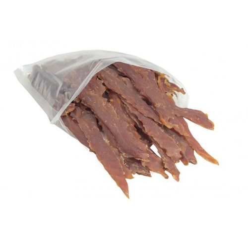 Duck Slices L to mięsny przysmak dla psów w postaci miękkich pasków z mięsa kaczki w wersji L – czyli ekonomicznym opakowaniu 0,5 kg. w doskonałej cenie. Przysmak dla psów Duck Slices jest bogatym źródłem białka, fosforu , żelaza, potasu, witaminy A oraz witamin z grupy B, co sprawia, że stanowi on doskonałe uzupełnienie zbilansowanej diety czworonoga między posiłkami lub wspaniały sposób na zmotywowanie Twojego psa podczas treningów, spacerów i zabaw. Kawałki kaczki Duck Slices poddawane są wyłącznie naturalnym procesom produkcji, polegającym na suszeniu świeżych kawałków mięsa. Dzięki temu przysmak dla psów Duck Slices nie traci swoich cennych wartości odżywczych. Klasyczny kształt mięsnych kawałków, które bez najmniejszego problemu można podzielić na mniejsze porcje, odpowiednia konsystencja oraz niepowtarzalny smak i aromat mięsnej przekąski gwarantują Twojemu psu zabawę na dłużej i ogromną radość z jedzenia, zaspokajając jednocześnie jego naturalną potrzebę żucia.