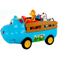 Wesoły Hipcio, który wiezie na przyczepce zwierzątka. Zabawka odtwarza piosenkę w języku polskim oraz wesołą melodię. Na przyczepie znajduje się sorter kształtów, po umieszczeniu zwierzątka we właściwym otworze, usłyszymy rymowankę na jego temat i realistyczny odgłos zwierzaka. Hipcio prowadzony rączką, zabawnie kłapie pyszczkiem. Każde ze zwierzątek znajdujących się w hipciowej przyczepce posiada terkoczące, ruchome nóżki.