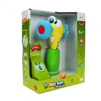 Teraz możesz pobawić się w majsterkowicza z gadającym młotkiem Silly Sam! Zabawny młotek potrafi mówić wesołe wyrażenia oraz wydawać dźwięki przy każdym uderzeniu. Zdania związane z pracą oraz wiele innych zachęcą malucha do zabawy wesołym młotkiem. Młoteczek wydaje, także realistyczne odgłosy stukającego młotka. Zabawa narzędziami pozwala dzieciom wczuć się w rolę dorosłych i poznać obowiązki domowe. Zabawa rozwija wyobraźnię i wspiera rozwój koordynacji ruchowej. Młotek posiada wygodny uchwyt odpowiedni dla małych rączek dziecka.