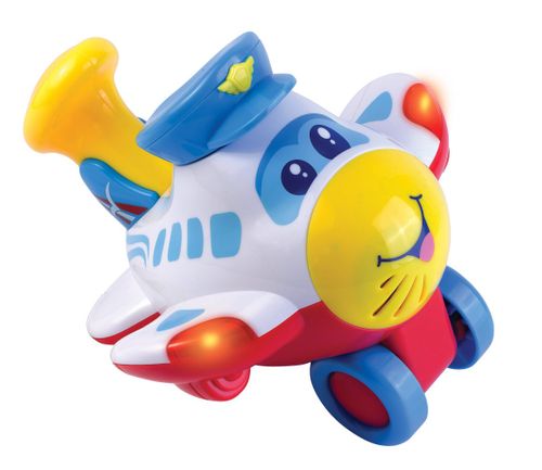 Dumel Discovery Stasio akrobara Razem ze Stasiem Akrobatą przeżyj niesamowitą podniebną przygodę pełną dźwięku i migających światełek! Kolorowy samolocik Stasio kryje w sobie mnóstwo wspaniałych funkcji! Aby rozpocząć zabawę naciśnij na jego czapkę. Zabawie towarzyszy realistyczny dźwięk silnika, wesołe melodie i migające światełka. Dzięki wbudowanemu czujnikowi Stasiu potrafi wykonywać akrobacje! Kiedy maluch weźmie go do ręki i podniesie go dziobem skierowanym do góry, Stasiu wyda dźwięk wzbijania się, a gdy zrobi razem z nim szybki manewr w dół, samolot wyda charakterystyczny dźwięk odpowiadający obniżaniu lotu. Obracaj Stasiem na wszystkie strony i słuchaj dźwięków towarzyszących podniebnym akrobacjom! Wygodny uchwyt znajdujący się przy ogonie zapewni bobasowi wygodę podczas zabawy z jego latającym przyjacielem. Wiek: 18m+