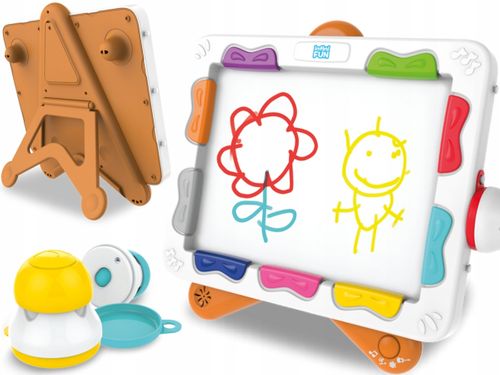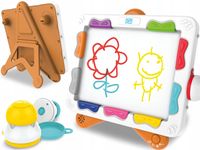 - kiedy mały artysta skończy swoje dzieło, można ustawić dźwiękopis w pozycji sztalugi, rozkładając w tym celu podpórkę umieszczoną z tyłu tablicy, aby wyeksponować pracę dziecka.
