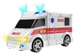 Ambulans z serii Flota Miejska. Pojazd na baterie, świeci i wydaje dźwięki.