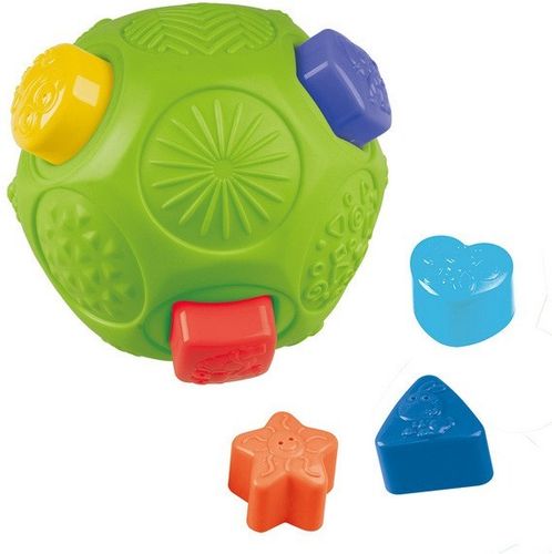 Miękka piłka i sorter w jednym. Piłka posiada ścianki o różnej fakturze oraz otwory na kolorowe klocki, które znajdują się w zestawie. Każdy z klocków posiada inny kolor kształt i fakturę – stanowi ją wypukła podobizna zwierzątka. Poprzez dopasowywanie kształtów oraz dotykanie zróżnicowanej faktury poszczególnych elementów, maluch może rozwijać swoje zdolności poznawcze oraz integrację sensoryczną.