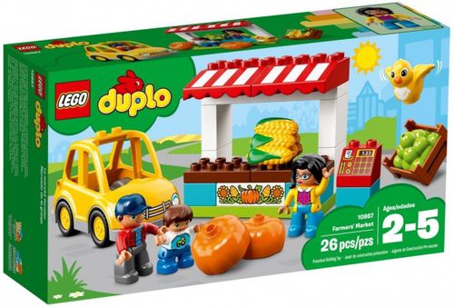 Zestaw Moje miasto LEGO DUPLO pozwala zbudować doskonale znane otoczenie i odgrywać w nim realistyczne scenki z udziałem nowoczesnych figurek DUPLO. Zabierz maluchy na wycieczkę na targ, gdzie poznają różne świeże warzywa i owoce. Gdy przećwiczą kupowanie produktów na straganie za pomocą trzech figurek DUPLO, mogą załadować rodzinny samochód i ruszać w drogę powrotną! Zestaw dużych klocków jest łatwy do zbudowania i pomaga rozwinąć koordynację wzrokowo-ruchową.
