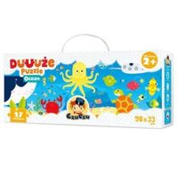 Propozycja dla maluchów, które chcą odkryć tajemnice podwodnego świata. Kolorowa ilustracja i elementy dopasowane do małych rączek to gwarancja dobrej zabawy i świetny pomysł na prezent. Wymiar układanki: 98x33 cm Zestaw zawiera: 27 elementów