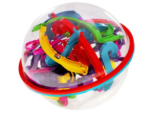 Kulolabirynt Intellect ball Labirynt to całkowita nowość na rynku! To duża przeźroczysta kula, wewnątrz której znajduje się ogromny kolorowy labirynt z wieloma zakrętami, tunelami, zjazdami.Wewnątrz kuli wraz z labiryntem znajduje się mała metalowa kulka, którą należy za pomocą sprytnych ruchów dłońmi poprowadzić kuleczkę alejkami labiryntu do celu.Na trasie kulki znajdują się różnego rodzaju przeszkody, zapadnie, przepaście, do wyboru są dwie różne ponumerowane drogi prowadzenia kulki, zadaniem jest tylko odpowiednie poruszanie kulą.Zabawka jest tak wciągająca i wesoła, że zapewne pokocha ją cała rodzina.Średnica kuli 19 cm. Addictaball to świetna zabawka zręcznościowa zarówno dla dzieci, jak i dorosłych. Ćwiczy koncentrację oraz cierpliwość oraz zdolności manualne. Kula wykonana jest bardzo estetycznie i kolorowo, zachwyci każdego fana labiryntów.Zabawka zapakowana w kartonowe pudełko.Szczerze polecamy jako rozrywkę na długie godziny dla całej rodziny. Standardowa kula Adict-a-Ball ma ok 13 cm średnicy, nasz posiada aż 19 cm! Produkt nowy, oryginalnie zapakowany - świetny pomysł na mądry i oryginalny prezent !