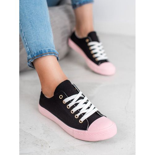 SHELOVET Trampki Damskie Czarne Różowe Tekstylne