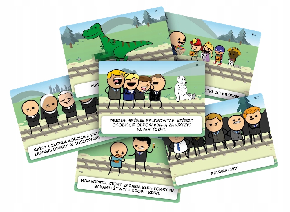 Jeszcze więcej moralnych dylematów! Życie Karola Kolejarza jest pasmem trudnych decyzji. Ledwie pokonał ostatnie rozwidlenie, a znów stracił panowanie nad swoją lokomotywą! Pędząca przed siebie śmiercionośna maszyna zbliża się do rozwidlenia, nasz bohater musi zdecydować, w którą stronę skręcić, a tymczasem na każdym z torów znajdują się niczego nieświadomi ludzie… „Dylemat wagonika. Postacie i modyfikatory” to pokaźny zestaw kart, które wyniosą Wasze rozgrywki na zupełnie nowy poziom! W rozszerzeniu znajdziesz 100 nowych okropnych postaci i 100 nowych nawet okropniejszych modyfikatorów, które uczynią rozjeżdżanie ludzi na torach jeszcze ciekawszym. Oczywiście wszystko w ramach czarnego humoru, ironii i żartów rodem z internetowego komiksu Cyanide and Happiness. Ostrzegaliśmy! Czym jest Dylemat wagonika? To imprezowa gra karciana przeznaczona dla osób pełnoletnich. Łączy filozoficzne rozważania z krwawą jatką i zmusza uczestników do podejmowania trudnych moralnie decyzji. Każdy z graczy po kolei wciela się w Karola Kolejarza, którego pociąg wymknął się spod kontroli i zbliża się do rozwidlenia. Na torach po obu stronach znajdują się zarówno szlachetne, jak i plugawe postacie. Maszynista musi zdecydować, które z nich oszczędzić, a które bezlitośnie przejechać.