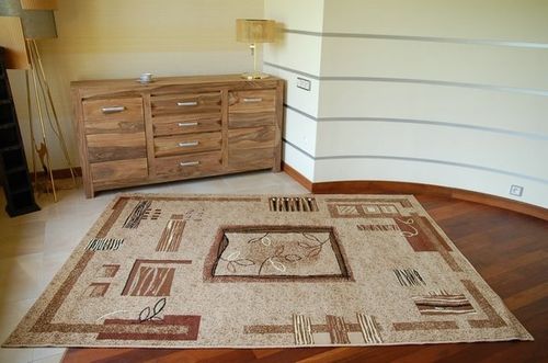 Dywany typu BCF wykonane są z przędzy polipropylenowej, na naturalnym spodzie jutowym. Runo dywanu jest dość krótkie, ale za to bardzo miłe w dotyku.