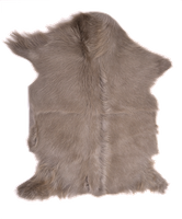 Ciemno-szary dywan Goat wykonany w 100% z naturalnej koziej skóry. Naturalny dywan w rozmiarze 60x70cm o nieregularnym kształcie, jest niezwykle delikatny i miękki w dotyku. Ze względu na swą naturalność, włosie dywanu nie wałkuje i nie skleja się, pozostając w swej niezmienionej strukturze. Dywan Goat z kolekcji Fur zachowany w klimacie wabi sabi sprawia, że nawet zimne industrialne wnętrze zostaje ciepło otulone.