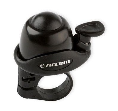 Lekki aluminiowy dzwonek Accent DONG montowany na kierownicy za pomocą opaski przykręcanej śrubą
