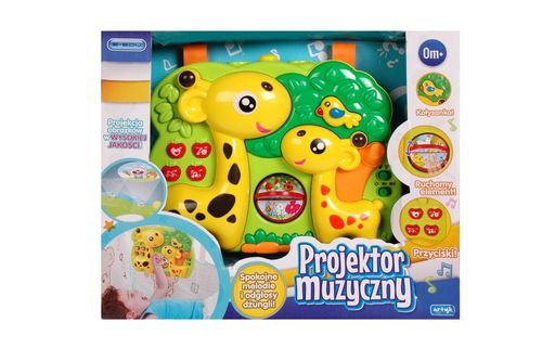 Zabawka posiada wygodny uchwyt do mocowania np. na łóżeczku. Regulowana głośność sprawi, że sprawdzi się zarówno w zabawie, jak i jako gadżet do wyciszania dziecka przed snem. Projektor z żyrafką ma też klawisze dźwiękowe i ruchome elementy, które zainteresują każdego malucha.