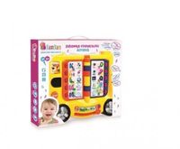 Zabawka Edukacyjna Muzyczny Autobus- zabawka edukacyjna od 18 m-ca. Kolorowy autobus, z przekładanymi kartami pozwala na zmianę dźwięków- liter bądź głosek wygrywanych na odpowiednich klawiszach, w zależności od rysunku na karcie. Dodatkowo przesuwanie suwaka pozwala na wybór opcji wygrywania liter, głosek, wymowy, lub całych wyrazów. Migoczące przyciski dodatkowo uatrakcyjniają zabawę. Zabawka stymuluje rozwój zmysłu słuchu, wzroku oraz rozwija zdolności manualne. Uczy literek, głosek oraz pełnych nazw przedmiotów, zwierząt bądź roślin.