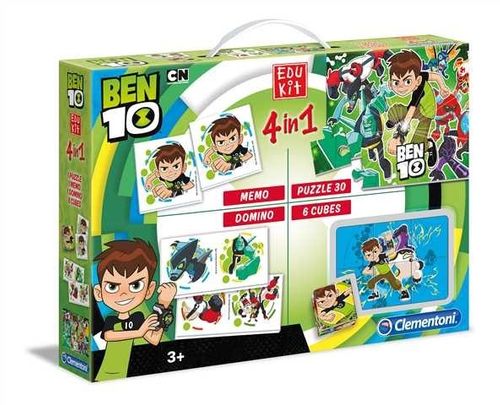 Fantastyczny zestaw z 4 grami, aby bawić się układankami, memosami, kostkami domina i klockami z postaciami z Ben 10!