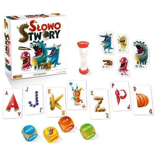 SłowoStwory gra imprezowa ("party game") polegająca na wymyślaniu na czas słów pasujących do kategorii wskazanej przez kostkę oraz zawierających litery widoczne na kartach.