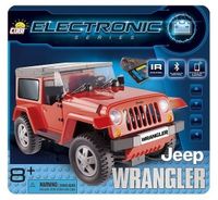 Model samochodu terenowego wzorowanego na amerykańskiej marce, jaką jest Jeep(R) Wrangler.Pierwszy klockowy model ze skrętnymi kołami.Poprzez wbudowany bluetooth oraz łącze na podczerwień, można swobodnie sterować nim za pomocą smartfona, tableta lub pilota.Pojazd ma otwierane drzwi, a także jeździ do przodu, tyłu i skręca w prawo i w lewo.Model wyposażony w pilota z drążkiem umożliwia zabawę jednocześnie czterema pojazdami. Wymaga to ustalenia pomiędzy modelami a pilotem kanału, na którym będzie odbywało się sterowanie. Dostępne są cztery kanały.Wymagane są baterie:Jeep 4 x AAA 1,5 V (czas pracy na standardowych bateriach 5 h)pilot zdalnego sterowania 2 x AAA 1,5 Vbaterii nie dołączono do kompletu