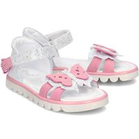 Sandały są przewiewnymi i lekkimi butami dla dzieci. Biały kolor z metalicznym połyskiem i różowymi elementami podoba się dziewczynkom.