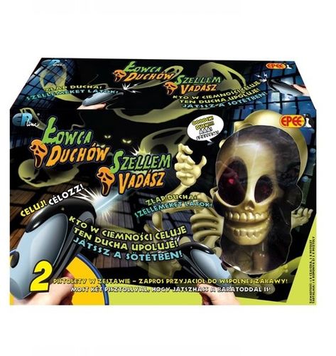 Zabawka umożliwia grę 2 graczom jednocześnie!Świetna zabawa, rozwój umiejętności zręcznościowych i sprytu oraz oswajanie dziecka z ciemnością.Łowca porusza głową w wielu kierunkach wyświetlając duchy na ścianach i suficie. Uczestnik zabawy łapie duchy za pomocą specjalnego pistoletu laserowego.Celem zabawy jest ustrzelenie jak największej ilości duchów w czasie 90-sekund. Cyfrowy licznik na pistolecie rejestruje każde udane trafienie.Zabawka wydaje niesamowite efekty dźwiękowe i wyświetla jasne zjawy na ciemnych ścianach.