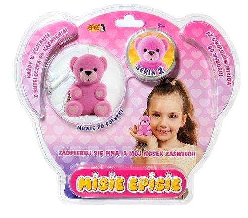 POZNAJ EPISIE - PRZESŁODKIE, INTERAKTYWNE MISIE! Każdy Miś w zestawie z buteleczką do karmienia i zawieszką, dzięki której możesz mieć swojego misia zawsze przy sobie. Funkcje misiów: świecący nosek, funkcja mówienia i płaczu, reakcja na podanie buteleczki oraz reakcja na głaskanie po główce.Wielki sukces pierwszej serii. Teraz 6 nowych misiów do kolekcji w uwielbianych przez dziewczynki kolorach:- Chaberek- Truskaweczka- Landrynka- Malinka- Jagódka- Magnolka Wymagają baterii: 3 x LR44Produkt wybierany losowo.Wiekod 3 lat
