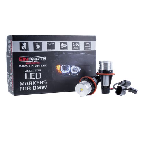 Montaż: Bardzo łatwy montaż (Plug and Play). Wystarczy zdemontować stare żółte żarówki i zastąpić markerami. Po ich instalacji uzyskujemy białe światło (barwą odpowiada BMW najnowszej serii które wykorzystują ringi jako światła do jazdy dziennej). Zastosowanie: E39 FL 2000 – 2004 |