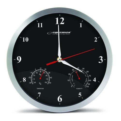 Nasz zegar ścienny Esperanza WASHINGTON służy nie tylko do pokazywania czasu - można z niego odczytać też temperaturę oraz wilgotność otoczenia. Jego wzornictwo sprawia, iż udekorujesz nim mieszkanie, biuro, sklep czy restaurację. Duża tarcza gwarantuje wysoką czytelność wskazań nawet z odległego miejsca pomieszczenia, w którym wisi nasz zegar.