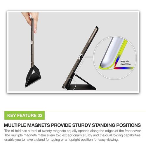 Lekkie i wytrzymałe etui z serii Smart Cover zostało stworzone specjalnie, aby zabezpieczyć urządzenie przed uszkodzeniami mechanicznymi z każdej ze stron. Yippee Series jest idealnie dopasowane i stabilnie przylega do iPada oraz posiada matowe wykończenie, dzięki czemu Twoje urządzenie będzie zawsze czyste i pozbawione tłustych śladów. Yippee ma jeszcze jedną funkcjonalną zaletę - automatycznie budzi i usypia iPada, gdy go otwierasz i zamykasz.