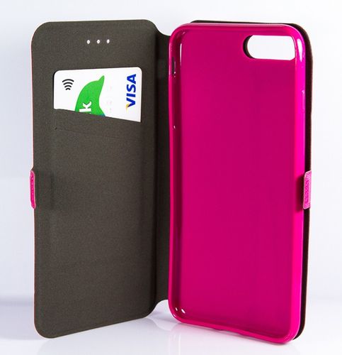 Kabura Book Pocket wykonana jest ze skóry ekologicznej o drobnej i mieniącej fakturze. Wewnątrz futerał pokryty jest delikatnym zamszowym materiałem , który chroni ekran telefonu przed zarysowaniem. Wewnętrzny silikon jest w kolorze futerału i jest dedykowany do modelu telefonu. Posiada wycięcia na gniazda, przyciski funkcyjne i aparat. Doskonale chroni telefon przed uszkodzeniami, zarysowaniami oraz kurzem. Książkowa forma futerału oraz wewnętrzne kieszonki na kartę kredytową czy pieniądze sprawiają, że Book Pocket z powodzeniem może zastąpić portfel. Etui posiada pewne zamykanie na podwójny magnes. Istnieje możliwość ułożenia futerału w wygodną podstawkę pod telefon. W zależności od ustawień monitora kolor przedstawiony na zdjęciu może się różnić od rzeczywistego.