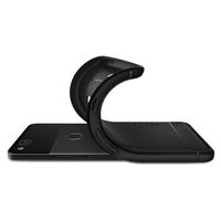 W całości stworzone z przyjemnego w dotyku poliuretanu (TPU), jednak górna i dolna część pleców etui pokryta jest teksturą włókna węglowego, co nadaje pokrowcowi niezwykle pancernego i militarnego charakteru. Nie bez powodu, ponieważ model Rugged Armor posiada militarny certyfikat MIL-STD-810G. Świetnie chroni w codziennym użytkowaniu przed zarysowaniami i pęknięciami, przez co możesz zacząć bez obaw użytkować swojego smartfona. Dodatkowo niewielka grubość i całość wykonana z TPU pozwala na pewniejszy chwyt i brak obawy o wyślizgnięcie się urządzenia z dłoni. Ramka delikatnie unosi ekran smartfona, dzięki czemu zapobiegasz jego rysowaniu się gdy położysz smartfon ekranem do płaskiej powierzchni.