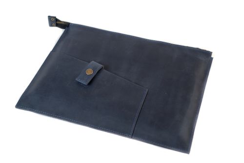 Unisex na suwak 03006. Skóra naturalna Crazy Horse Ręcznie robione na zamówienie. Styl vintage. niebieski