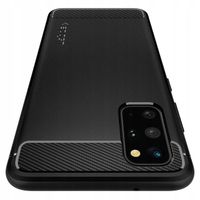 W całości stworzone z przyjemnego w dotyku poliuretanu (TPU), jednak górna i dolna część pleców etui pokryta jest teksturą włókna węglowego, co nadaje pokrowcowi niezwykle pancernego i militarnego charakteru. Nie bez powodu, ponieważ model Rugged Armor posiada militarny certyfikat MIL-STD-810G. Świetnie chroni w codziennym użytkowaniu przed zarysowaniami i pęknięciami, przez co możesz zacząć bez obaw użytkować swojego smartfona. Dodatkowo niewielka grubość i całość wykonana z TPU pozwala na pewniejszy chwyt i brak obawy o wyślizgnięcie się urządzenia z dłoni. Ramka delikatnie unosi ekran smartfona, dzięki czemu zapobiegasz jego rysowaniu się gdy położysz smartfon ekranem do płaskiej powierzchni.