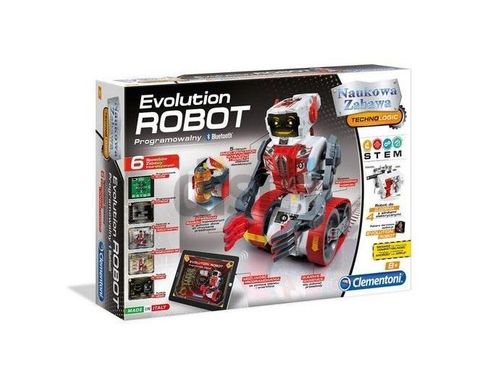 Evolution Robot pomoże Ci poznać świat robotyki w prosty i zajmujący sposób. Po zbudowaniu robota dzieci mogą zaprogramować go i zlecić mu transport obiektów dzięki jego ruchomym ramionom. Clementoni opracowała darmową aplikację zgodną z tabletami i smartfonami, która umożliwia pięć różnych trybów pracy: programowanie, sterowanie w czasie rzeczywistym, samodzielna nauka, taniec i Memo! Z dużą ilością dźwięków, muzyki, wiadomości głosowych i mimiki, Evolution Robot z pewnością stanie się nieodłącznym