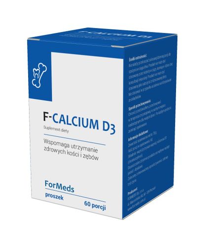 Suplement diety F-CALCIUM D3 zawiera wapń (cytrynian) oraz witaminę D (D3)