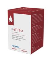Suplement diety F-VIT B12 zawiera witaminę B12 oraz inulinę z korzenia cykorii w formie proszku.