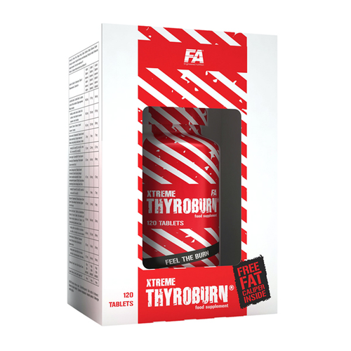 Suplement diety FA Nutrition Xtreme Thyroburn to najwyższej jakości spalacz tłuszczu, który opiera swój skład na naturalnych ekstraktach roślinnych, dzięki którym pozbędziesz się raz na zawsze problemu nadwyżki kilogramów! Suplementacja preparatem FA Nutrition Xtreme Thyroburn, wskutek swej innowacyjnej formuły składników aktywnych, wpływa na efektywne spalanie tkanki tłuszczowej. Preparat FA Nutrition Xtreme Thyroburn wykazuje bardzo silne działanie lipotropowe i zwiększa wydzielanie ciepła przez organizm. Dodatkowo, suplement ten stymuluje pracę metabolizmu oraz, dzięki zastosowaniu specjalnych żelowych tabletek, umożliwia stopniowe uwalnianie składników! Nie zastanawiaj się i już teraz wypróbuj środek FA Nutrition Xtreme Thyroburn, a szybko przekonasz się, czym jest szczupła sylwetka i brak wstydu na plaży!