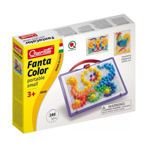 Tworzenie mozaiki poprzez wstawianie kołeczków w perforowaną tablicę zgodnie z proponowanym wzorem bądź własną wyobraźnią jest wspaniałą i twórczą zabawą. Zabawka stymuluje rozpoznawanie kolorów, rozwija umiejętności manualne oraz koordynację ruchową.