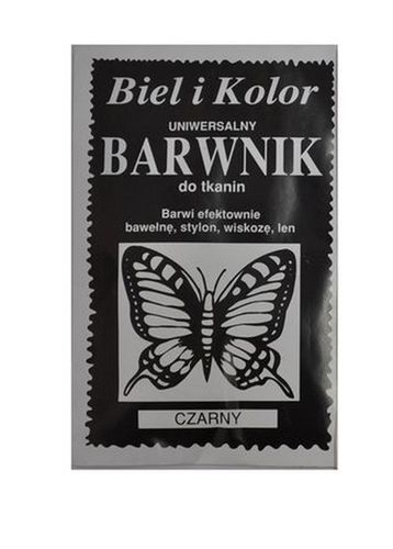 Barwi efektownie: Bawełnę, Stylon, Wiskozę, Len Zawartość torebki ( 10 gram ) przeznaczona jest do barwienia 0,5 kg materiału! Cena dotyczy 1 szt. Przepis stosowania: Zawartość torebki lub jej część - w zależności od ciężaru barwionego materiału - rozpuścić dokładnie w 1l gorącej wody. Materiał w postaci tkaniny, dzianiny lub przędzy zamoczyć w takiej ilości ciepłej wody, aby był całkowicie zanurzony. Do barwienia używać wyłącznie naczyń emaliowanych. Barwienie bawełny, wiskozy i lnu: Rozpuszczony barwnik wlać do większego naczynia, dodać ciepłej wody, dokładnie wymieszać i włożyć materiał.Ogrzewać kąpiel do wrzenia ciągle mieszając.Po 30 minutach gotowania dodać 2 łyżki soli kuchennej na każdy litr kąpieli i gotować intensywnie mieszając jeszcze 30 min. Naczynie odstawić do ostygnięcia do ok. 60° C, po czym materiał wyjąć, płukać kilkakrotnie , aż do uzyskania czystej wody i wysuszyć. Barwienie stylonu (np. rajstop): Rozpuszczony barwnik wlać do większego naczynia, dodać ciepłej wody i po jednej łyżce stołowej octu na każdy litr kąpieli. Po wymieszaniu włożyć dokładnie zamoczony materiał i intensywnie mieszając ogrzewać do wrzenia. Po godzinie gotowania materiał wyjąć, płukać i wysuszyć.