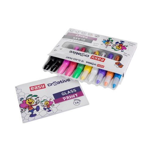 CechyJeśli Twoją pasją jest malowanie na szkle, farby witrażowe zostały stworzone właśnie dla Ciebie.Farby witrażowe w 8 kolorach + czarny konturW zestawie 2 tubki czarnej farby konturowej, 8 tubek farb do wypełnienia kształtu w kolorach: białym, żółtym, pomarańczowym, różowym, pudrowym-różowym, zielonym, fioletowym, niebieskim.Farby w tubce w formie pisaka, z wygodnym dozownikiem. Pojemność: 10,5 ml.Szeroka baza kolorów pozwala na tworzenie wielobarwnych zdobień na szkle, porcelanie, kubkach oraz powierzchniach z tworzyw sztucznych.Na szkle malowaneWitraż jest niezwykłą formą sztuki, w której światło pozwala odkrywać zupełnie nowe aspekty zamysłu artysty.Farby witrażowe pozwalają wykonać zdobienie na materiale odpornym na działanie innych artykułów plastycznych szkle, porcelanie, lustrze, tworzywach sztucznych. Trwała forma nie zmywa się w kontakcie z detergentami, można zatem bardzo długo cieszyć się efektem swojej pracy.Odrobina inspiracjiWraz z farbami dostarczana jest książka z 14 wzorami oraz 2 podkłady foliowe. Wprowadzą one w kolorowy świat witraży i staną się inspiracją do tworzenia własnych, autorskich projektów.WygodaFarby zamknięte zostały w wygodnym opakowaniu przypominającym flamaster, metalowa, cienka końcówka pozwala precyzyjnie dozować ilość farby oraz kreślić dokładne, eleganckie linie.Skuwka zapobiega wysychaniu.Trwały efektFarba utrwala się na powierzchni przez 24 godziny. Ewentualnych poprawek można dokonywać tuż po wykonaniu rysunku.